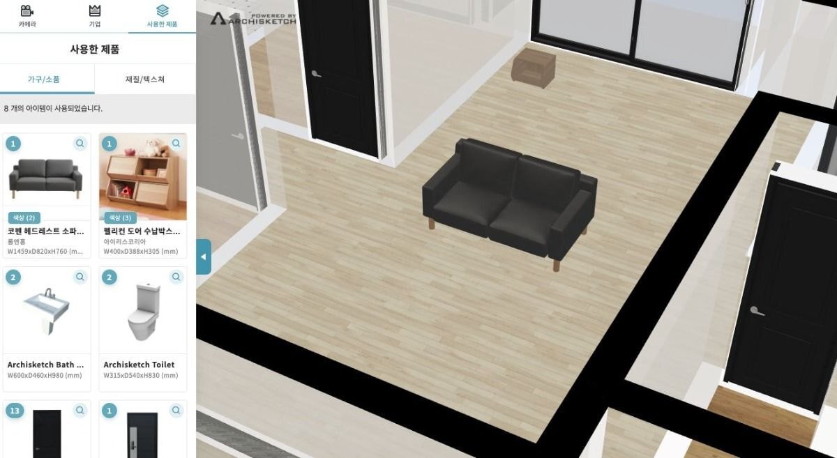 실제 존재하는 집 도면에 실제 존재하는 가구를 집어넣어서 3d로 볼 수 있음