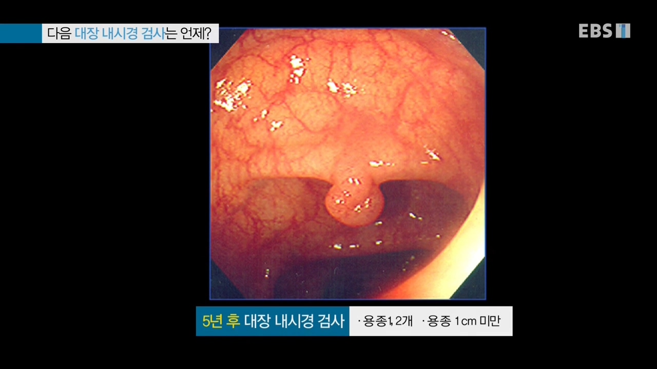 5년 후 대장 내시경 검사 - 용종 1,2개, 용종 1cm 미만