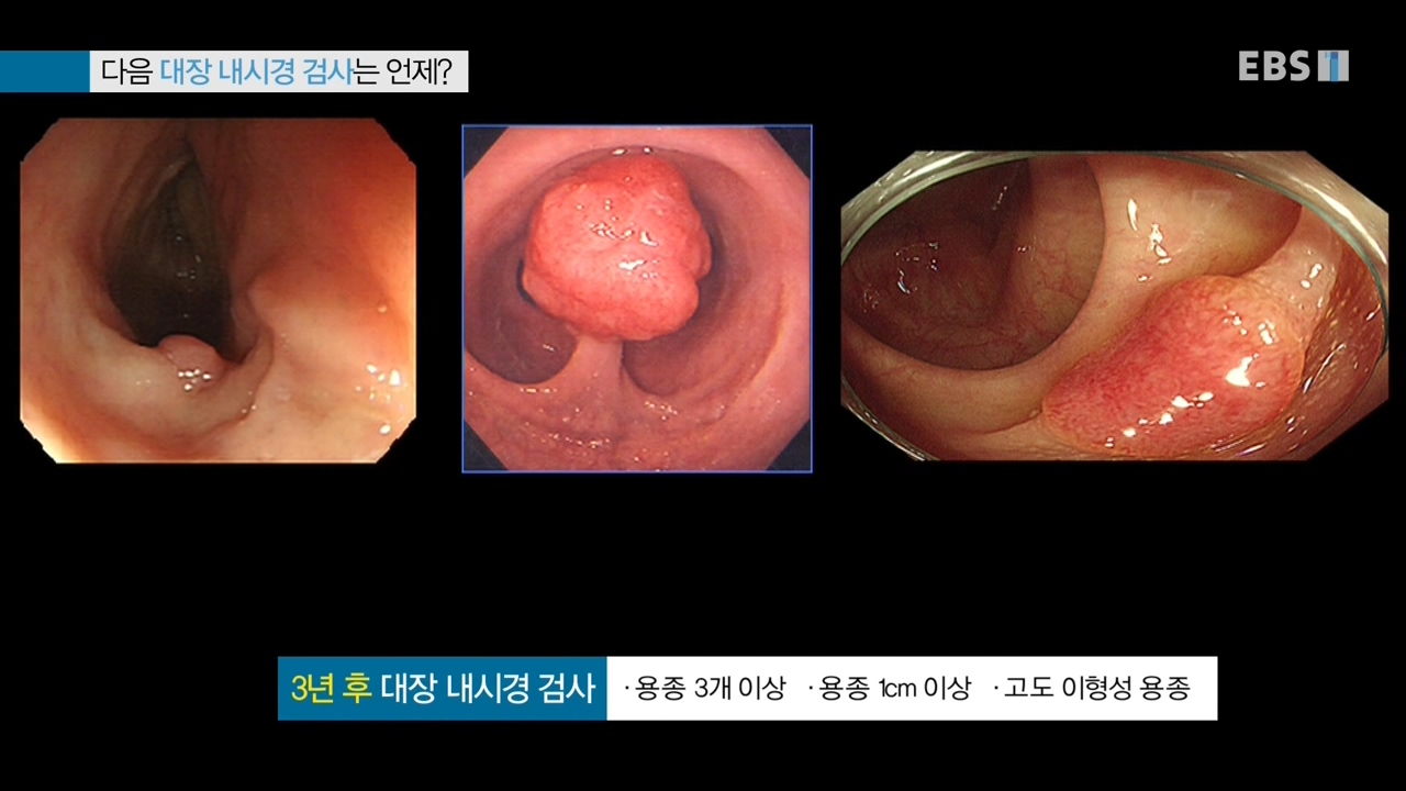3년 후 대장 내시경 검사 - 용종 3개 이상, 용종 1cm 이상, 고도 이형성 용종