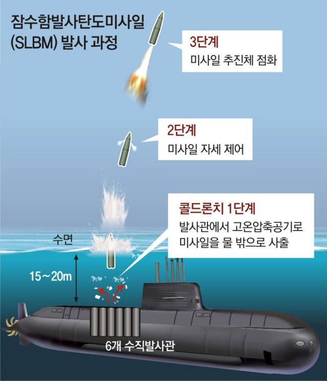 통상 SLBM 기술 개발은 지상 시험발사, 수중 시험발사, 잠수함 시험발사 등 3단계로 진행된다. 지난해 말 지상 시험발사에 성공한 군은 잠수함 대신 바지선을 이용해 얕은 물속에서 SLBM을 발사하는 2단계 수중 시험발사를 올해 마쳤다. SLBM 6기를 탑재할 수 있는 우리 군의 첫 3000t급 잠수함인 도산안창호함이 지난달 13일 취역하면서 관련 기술 개발에 속도를 내고 있는 것이다. 현재 SLBM 보유국은 미국, 러시아, 영국, 프랑스, 인도, 중국, 북한 등이다.