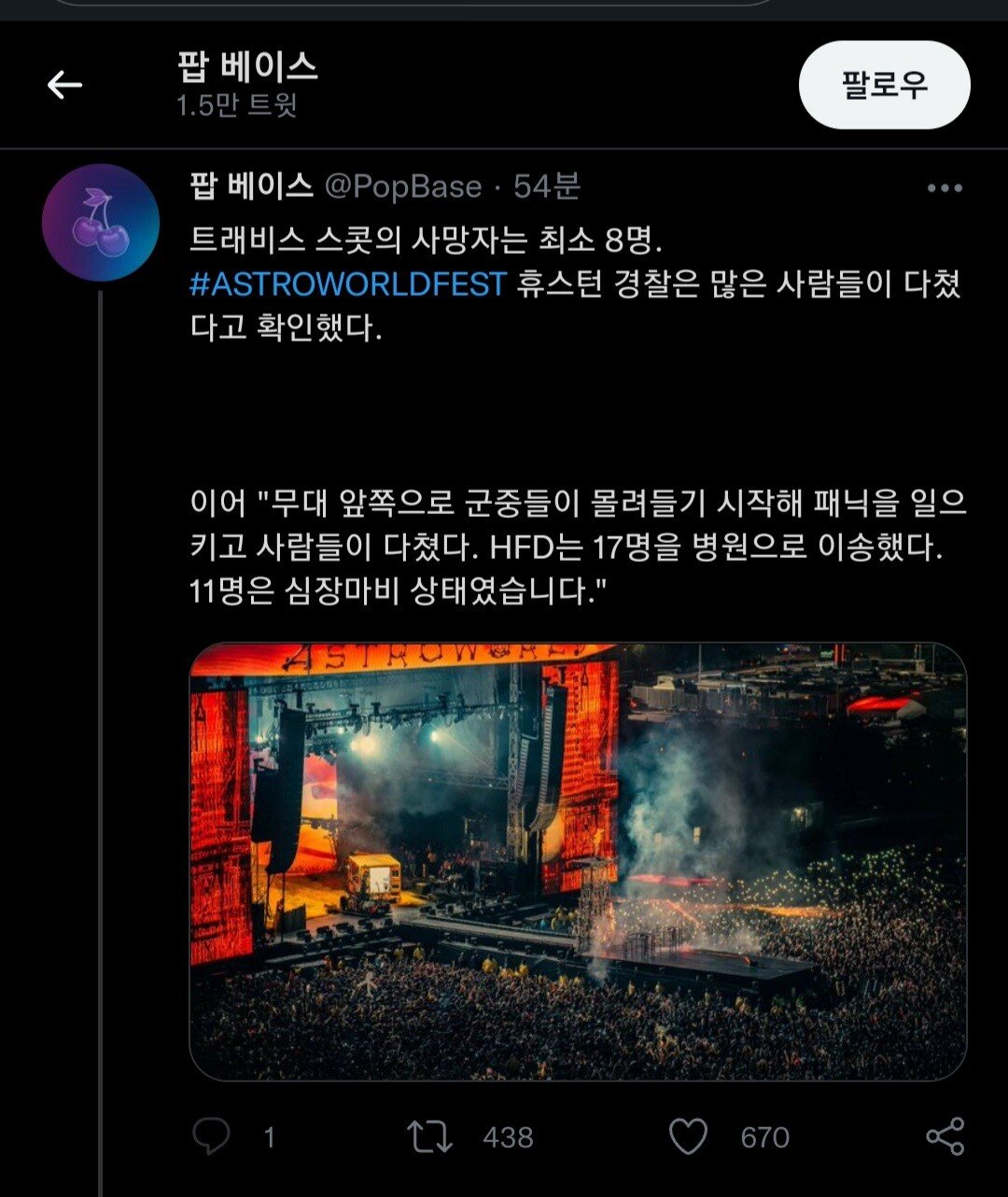 트래비스 스캇(스콧)의 공연 도중 압사 사고가 발생해
