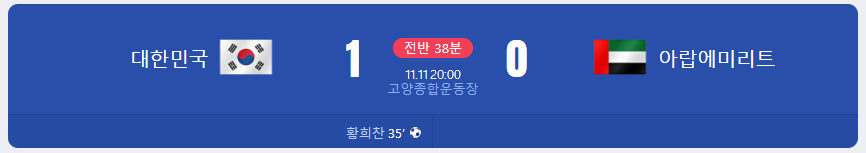 전반전은 한국이 1-0으로 리드로 마무리 되었다.