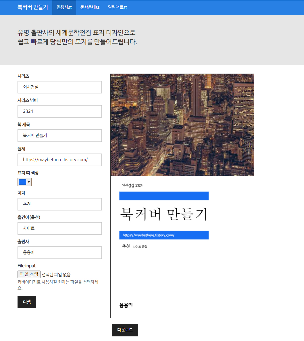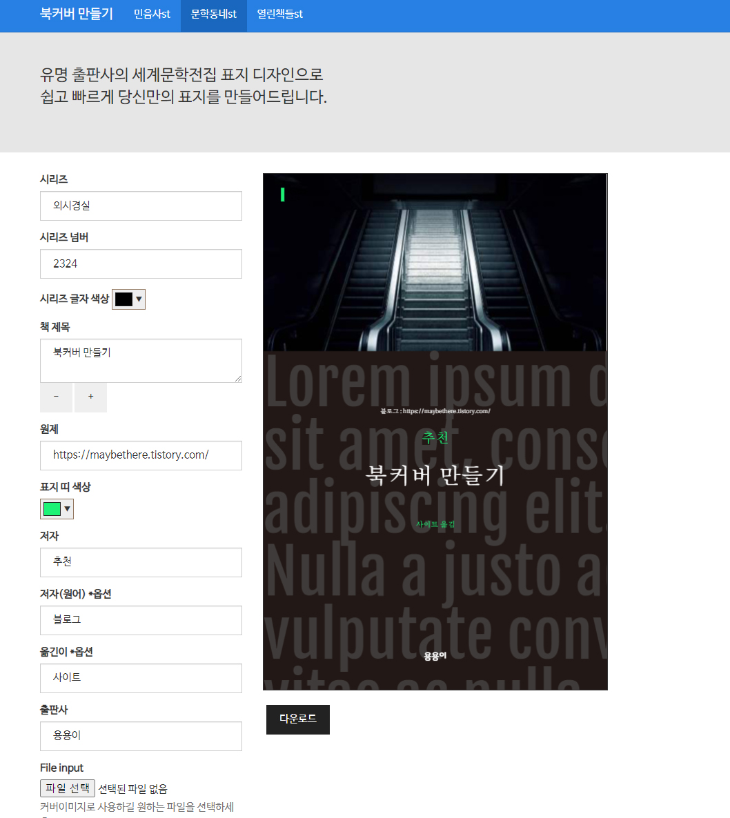 믿음사 문학전집 책표지 만들어주는 사이트