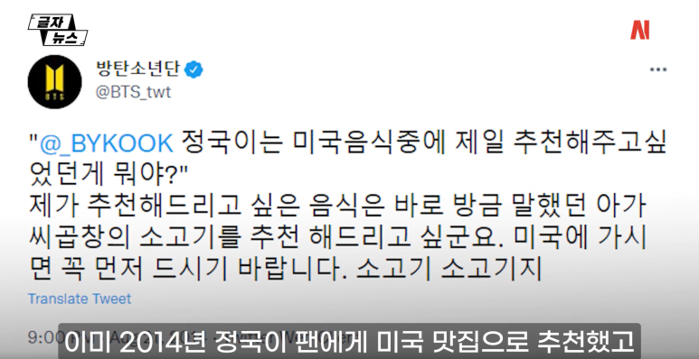 BTS 진의 아가씨 곱창 언급 인터뷰