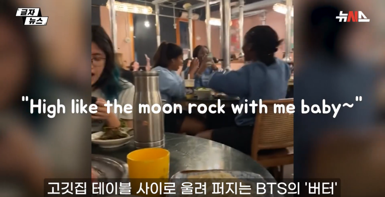 즐겁게 먹고 BTS의 노래 '버터'를 떼창을 한다.