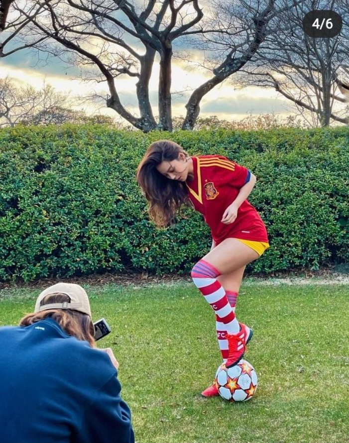 스페인 국가대표 유니폼을 입은 사진을