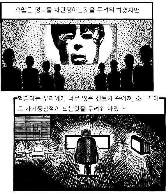 헉슬리는 진실이 쓸데없는 정보의 바다에 수장될 것을 두려워 하였다.