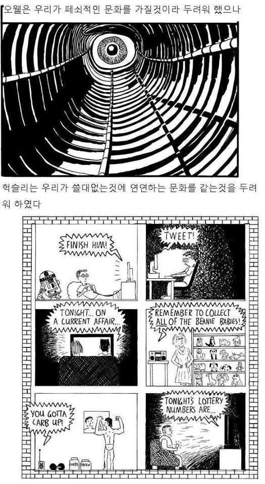 한마디로 오웰은 우리가 증하는 것들이 우리를 망하게 한다고 생각했지만