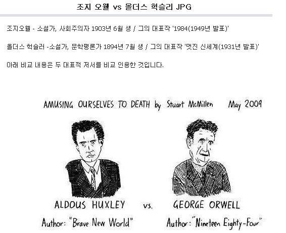 조지 오웰 vs 올더스 헉슬리 저서로 본 비교 내용