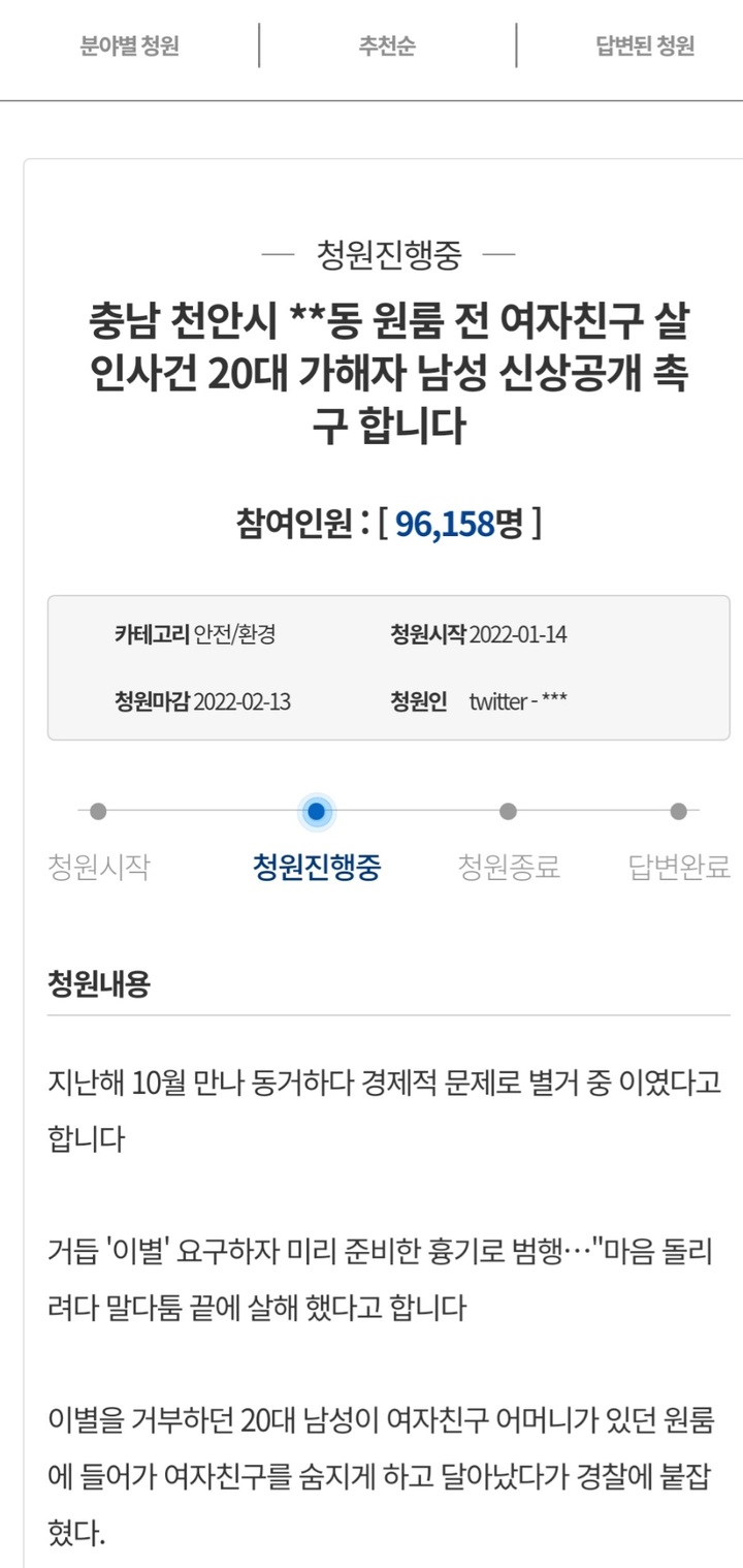 20대 가해자 남성 신상공개 촉구합니다’라는 제목으로