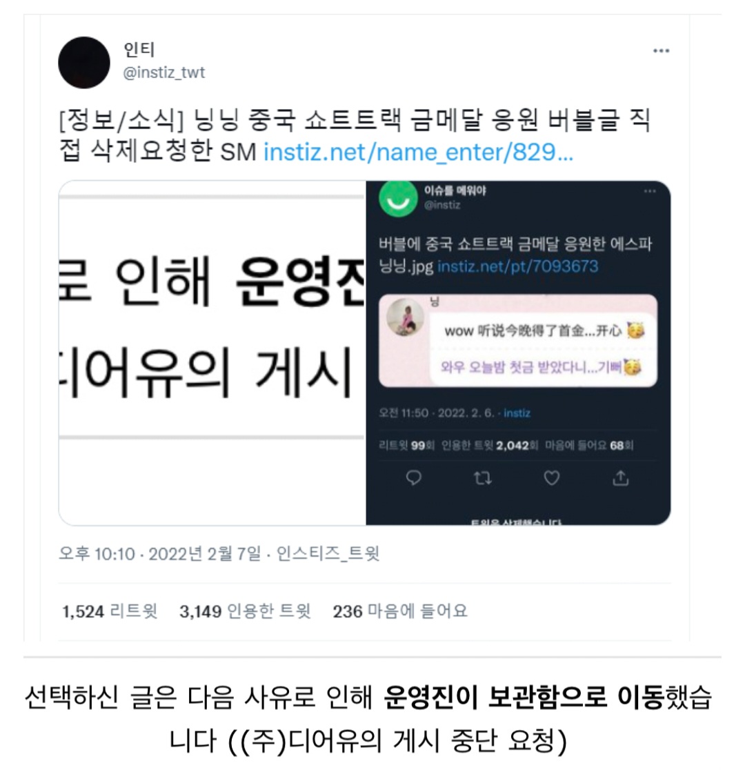 😄 운동 스포츠/올림픽 패럴림픽 (베이징 올림픽 쇼트트랙 반응) 금메달 축하해주는 에스파 중국인 멤버 by 두용이 2022. 2. 8. 반응형 금메달 축하해주는 에스파 중국인 멤버 지금 sm 법무팀이 커뮤 돌아다니면서 실시간 삭제중 반응형 공유하기 게시글 관리 외시경실 관련글 (올림픽 3관왕) 진선유, 쇼트트랙 여제 (베이징 올림픽) 차준환 쇼트 4위 (베이징 올림픽 쇼트트랙 반응) 송소희 무한도전 동계올림픽 짤 댓글