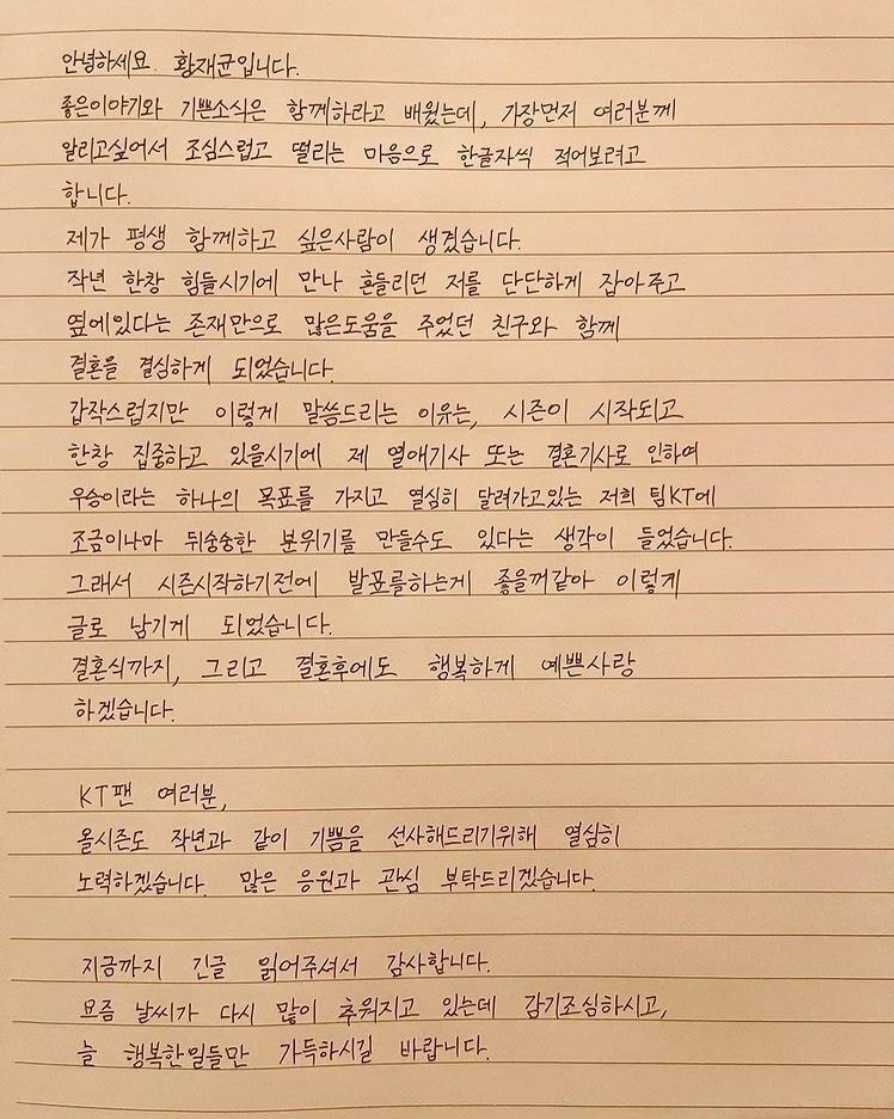 황재균은 지난달 KBS2TV '살림하는 남자들'에 출연해