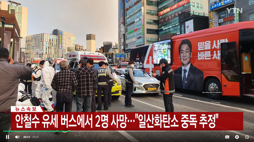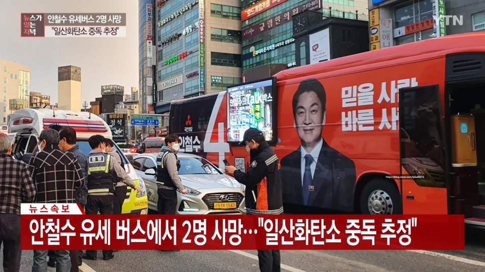 안철수 유세 버스에서 2명 사망 '일산화탄소 중독 추정'