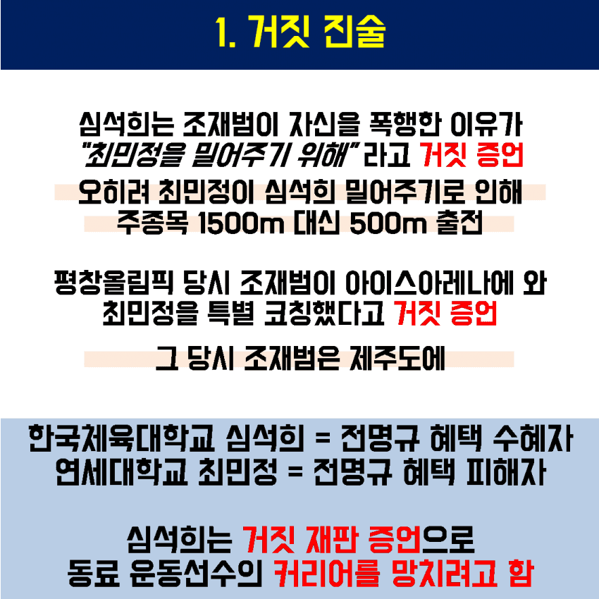 이 자리를 빌어 김아랑 선수와 최민정 선수에게 진심으로 사죄드립니다.