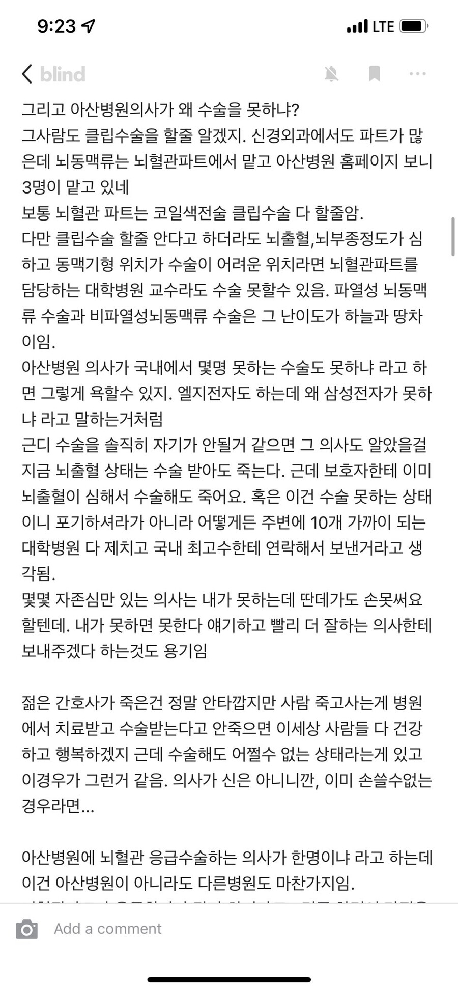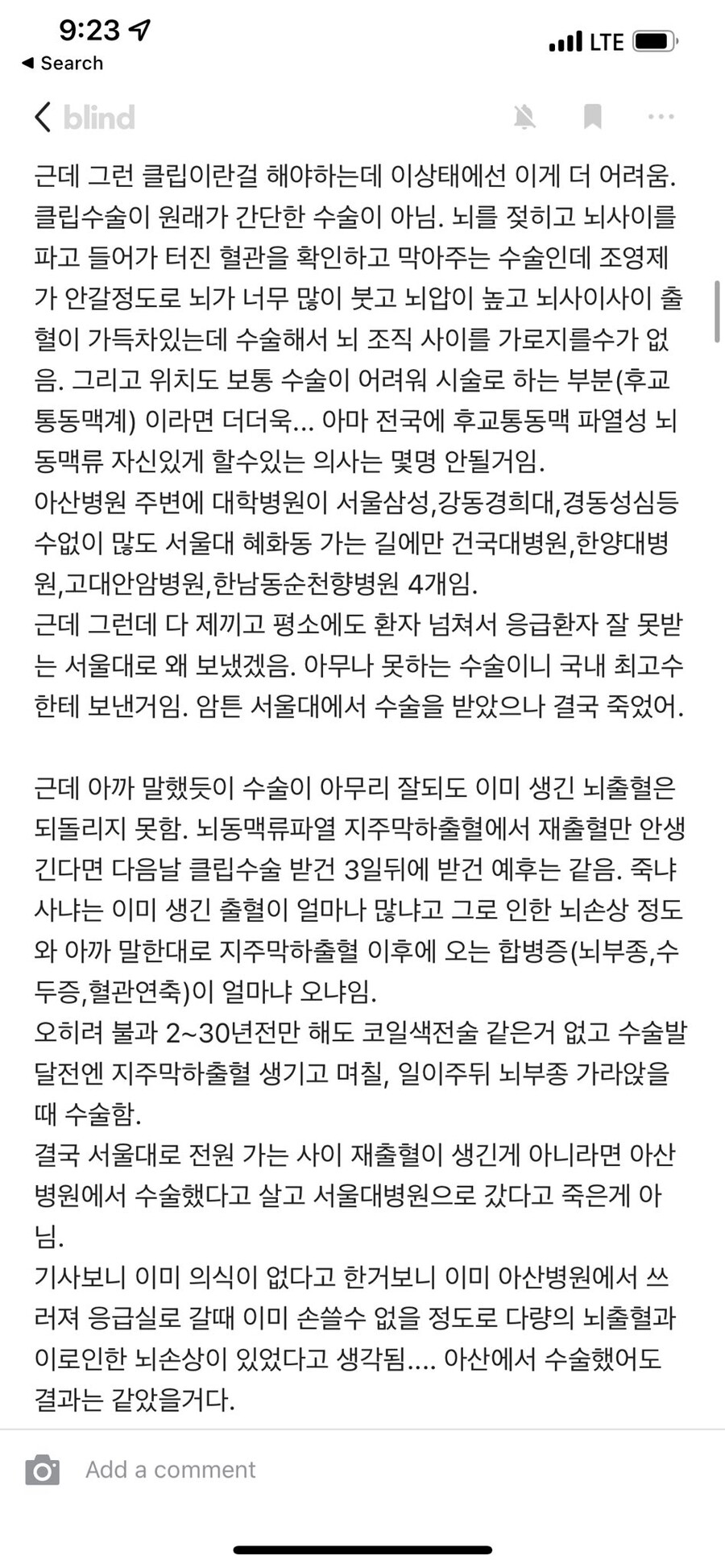 (블라인드) 아산병원 간호사 뇌출혈 소신발언