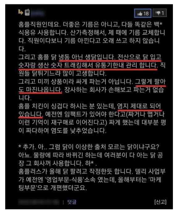 유통기한 준수와 제대로 된 닭고기 염지에도 불구하고