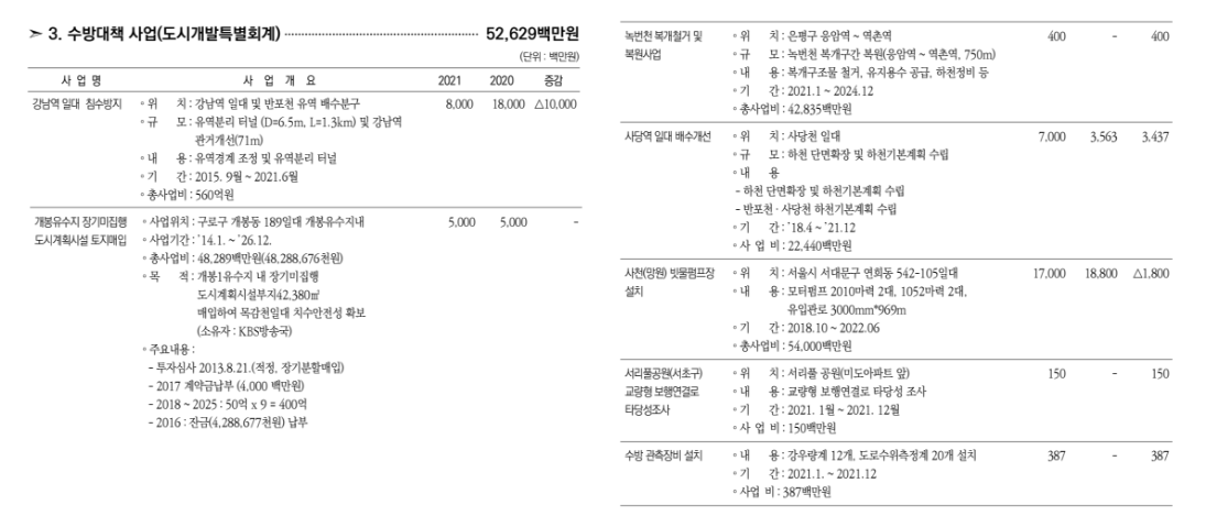 그 가운데 2021년 수방대책 사업의 예산(526.2억 원)