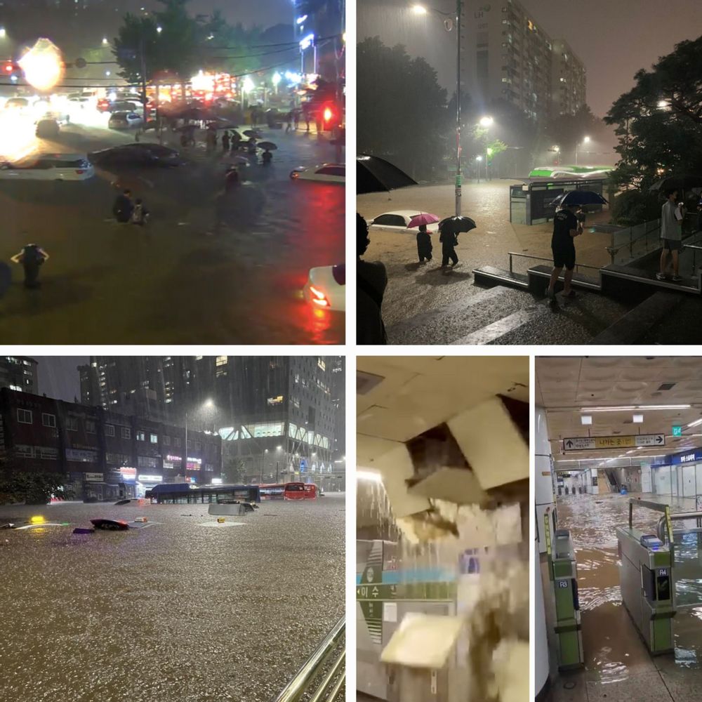 시간당 130 mm의 폭우가 쏟아지는 바람에,