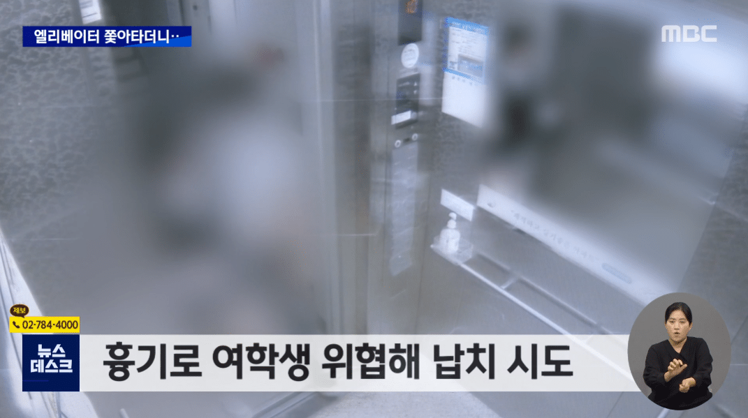한 남성이 여학생의 뒤를 따라 엘리베이터에 탄다.