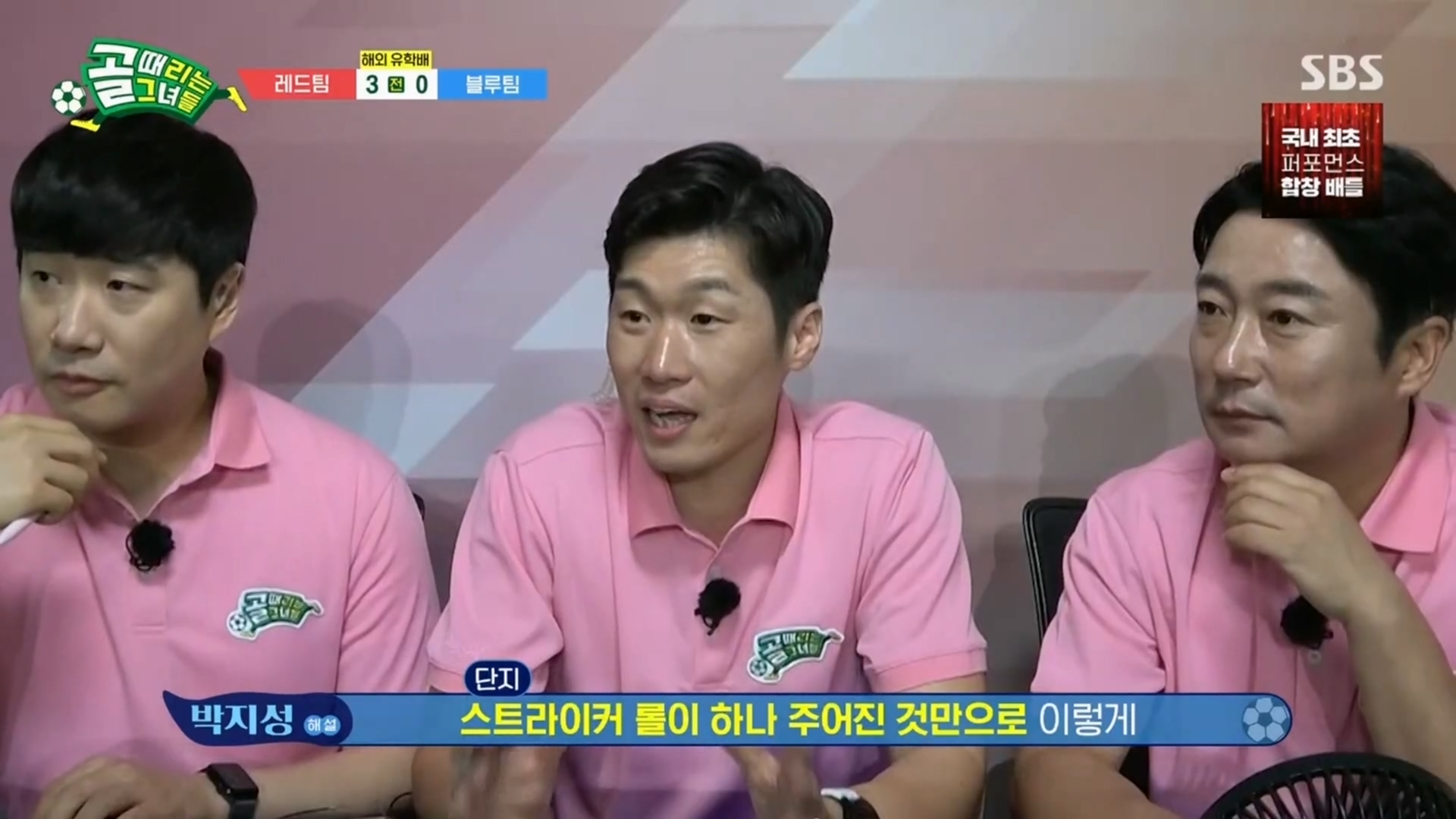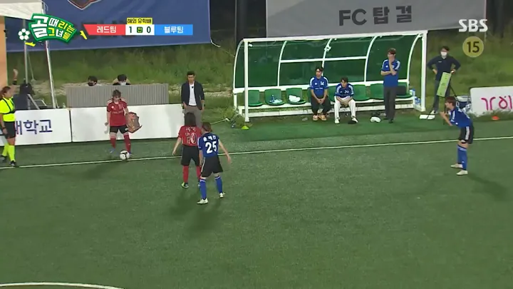 (골때녀) 슈퍼리그 챌린지리그 통합 올스타전 올스타전은 슈퍼리그와 챌린지리그의 대장정을 마무리하는 경기로 진행되었다. 특별 해설위원 박지성 시축 블루팀 vs 레드팀 선수 픽 블루팀 레