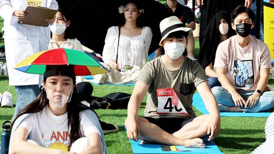 햇볕 아래 앉아 있던 참가자들의