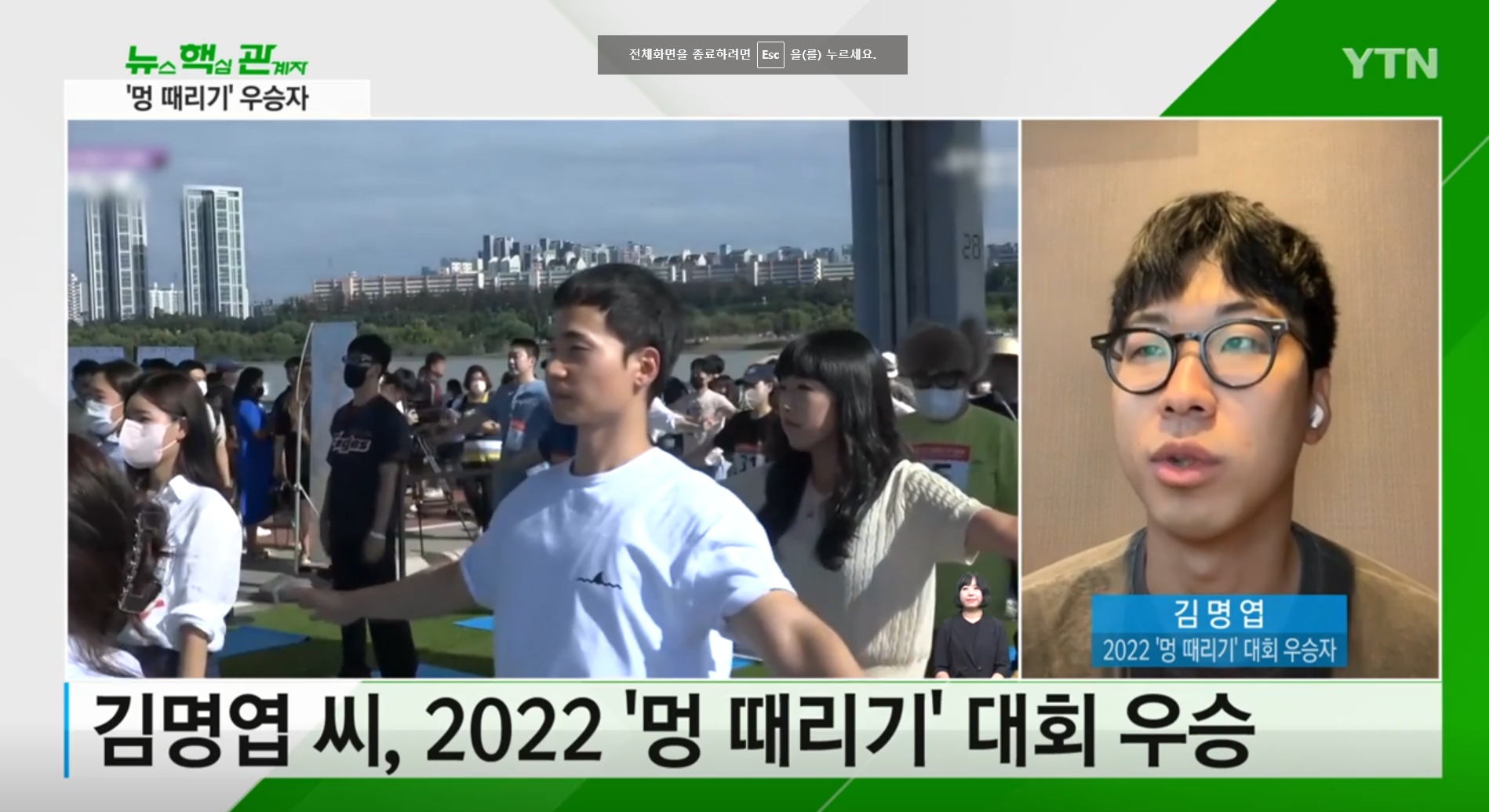 - 제 5회 2022 한강 멍때리기 대회 | 2022년 9월 18일 | 수상자 : 김명엽(31)