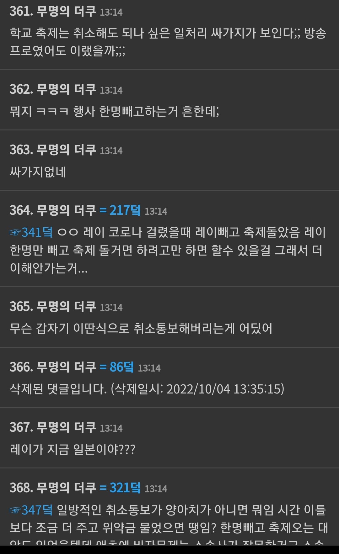 경북대측에서 며칠 안남기고 갑자기 아이브가 취소통보했다고 올림