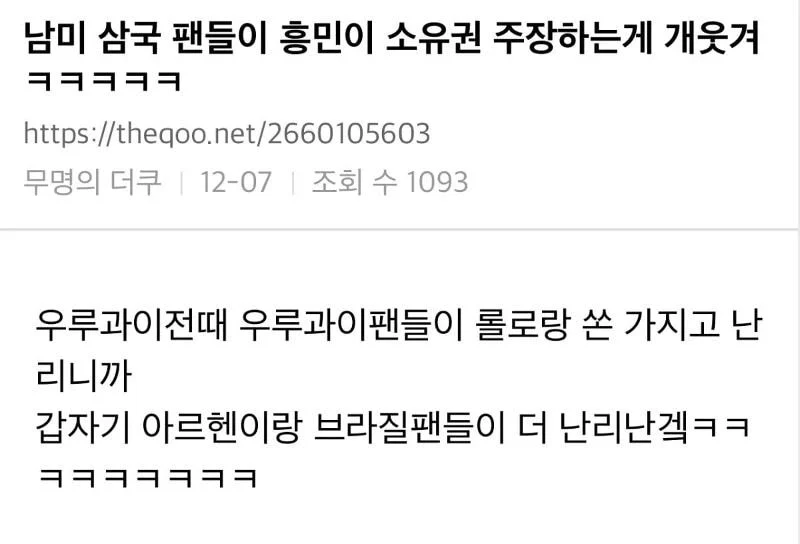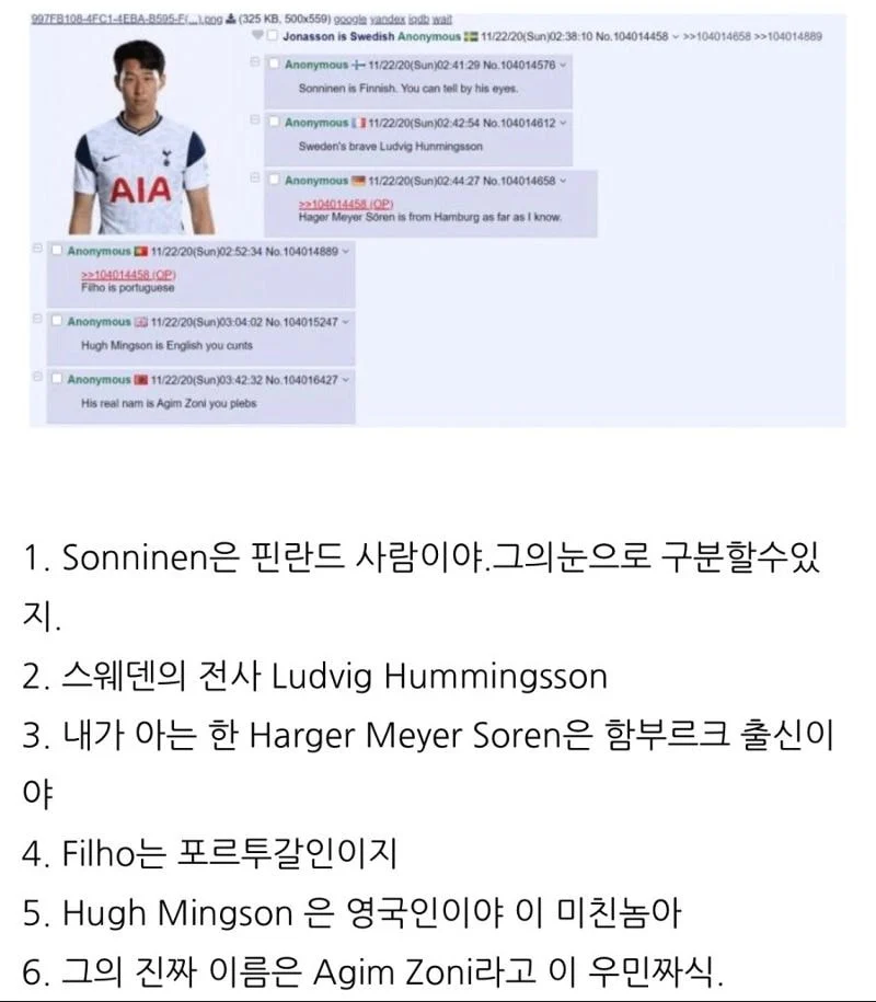 손흥민 이름가지고 지네나라 식으로 개명(?)하면서 서로 자기네 국적이라고 하고있음