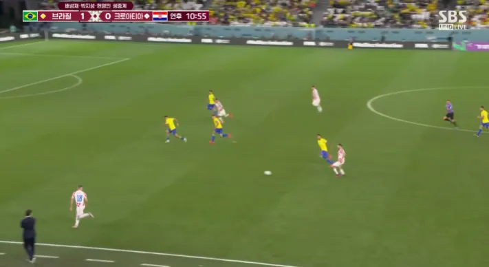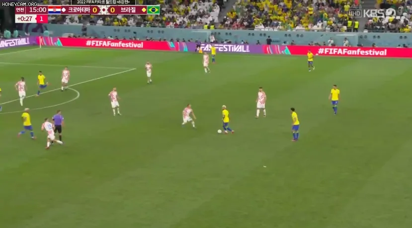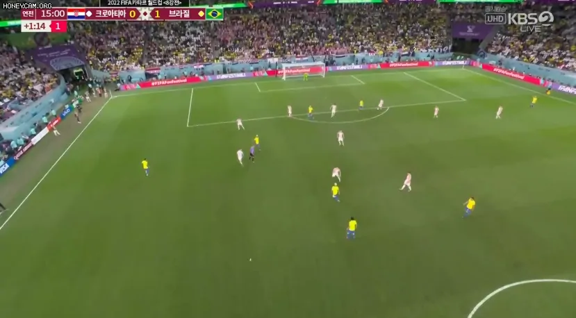 후반전에는 중반까지 브라질이 공격전개에서 계속 패스미스가 나오는 등 한국전에서 보여준 날카로움을 보여주지 못했다. 크로아티아는 그 와중에 나름 공격을 전개하려고 했지만 라인을 너무 내린 관계로 딱히 위협적이지 않았다. 간간히 나오는 브라질의 찬스는 리바코비치가 신들린 판단력, 선방, 수비라인 조율로 모조리 차단했다. 이런 골키퍼와 수비의 활약에 힘입어 크로아티아는 정규시간 종반까지도 브라질을 무실점으로 막고 있지만, 또다시 승부차기를 노리는 듯 보이 카운터 상황에서는 전혀 과감한 모습을 보이지 않았다. 이에 따라 브라질의 알리송 키퍼는 중계 화면에서 완전히 사라져버렸다.