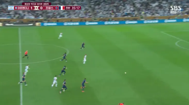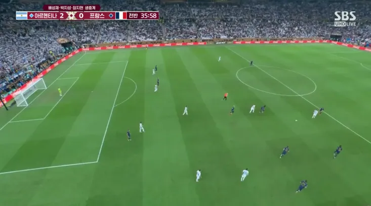 전반전까지만 해도 프랑스가 알제리 쇼크를 연상케 하는 최악의 경기력으로 압도적으로 끌려갔으나 후반전 선수교체 이후 음바페가 해트트릭을 기록하며 동점을 만들어버렸다. 특히 연장전 마지막 순간에 중요 장면이 지속적으로 나오고 결국 승부차기까지 가는 상황이 되면서 역사상 최고의 월드컵 결승전이 되었다.
