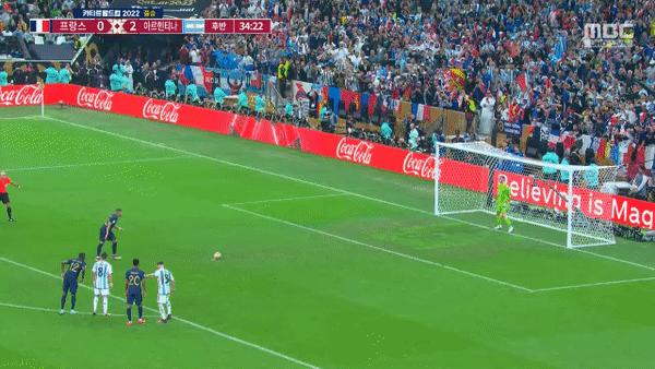 카타르 월드컵 결승전 음바페 PK골.gif (아르헨티나 2:1 프랑스) 후반 33분 콜로 무아니가 오타멘티로부터 페널티킥을 얻었다. 키커로 나선 음바페가 성공하면서 추격의 불씨를 살렸다.