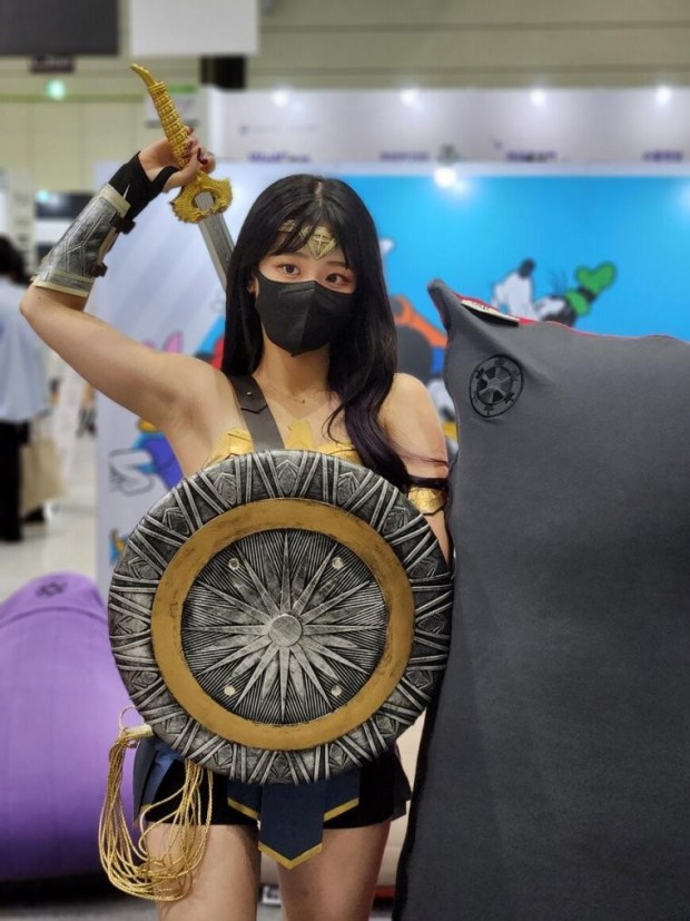 - 8월 27일 서울 팝콘 DC부스에서 원더우먼코스프레를 하고 부스 홍보를 진행했다.