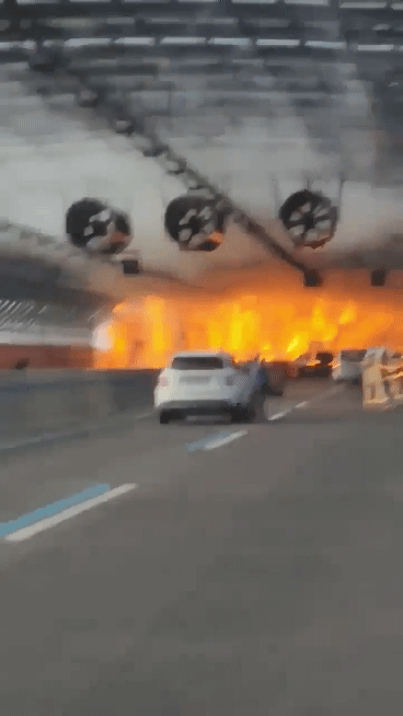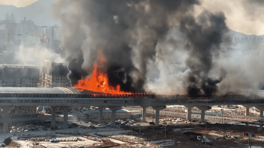 방음터널 내부는 화염으로 가득하고, 뜨거운 열기로 인해 터널 천장이 녹아 불똥이 비처럼 떨어지는 모습도 보였다.