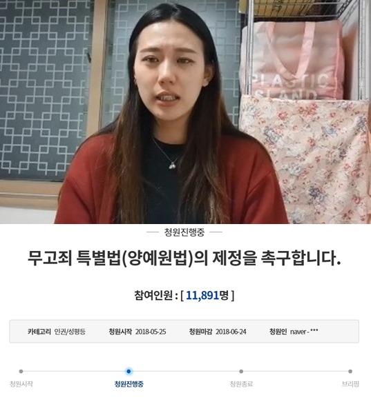 스튜디오 실장이 양예원과의 카톡 대화를 복원해 공개한 후 2018년 5월 25일에 무고죄에 관한 처벌을 특별법으로 더욱 강화해달라는 무고죄 특벌법(양예원법) 제정 청원이 청와대 국민청원에 올라왔다. 결국 이 청원은 참여인원 20만 명을 넘겨 청원에 대한 청와대의 답변을 들을 수 있게 되었다. 청원 링크 하지만 홈페이지 측에서 '양예원법'은 삭제했다.