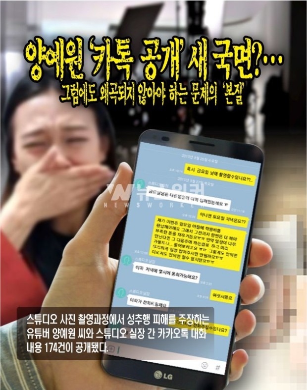 이은의 변호사가 양예원의 법률 조력을 맡고 있다. 이은의는 삼성전기 재직 시절 사내 성희롱 문제를 공론화해 배상 판결을 받아낸 후, 로스쿨에 진학해 변호사가 된 이력을 갖고 있다. 성희롱 등 성 관련 범죄에서 여성 피해자들 변호를 적극적으로 맡고 있으며, 양예원이 최초 폭로 동영상을 올렸을 때에도 페이스북 댓글을 통해 법률적 도움을 줄 뜻이 있음을 밝힌 바 있다. 그리고 이은의 변호사가 양예원의 변호를 위해 처음으로 만난 시기는 6월로 추정된다. 이은의 변호사는 최근 언론에서 "양예원 씨는 적어도 우리 사무실을 처음 왔을 때부터 단발머리였다"이라고 발언했다. 그런데...
