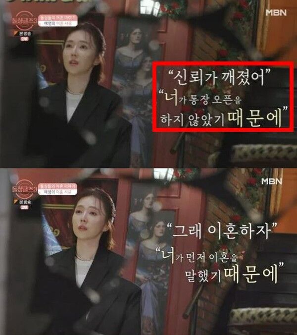 그는 "이 사람이 돈을 많이 벌건 적게 벌건 안 벌건 얼마를 모았건 관계가 없었는데 그 사람은 그게 되게 중요했던 거 같다. 통장 오픈은 결혼해서 해도 늦지 않다고 생각했다. 나는 숨기는 게 없었으니까. 그런데 (전남편이) '통장에 있는 금액을 나한테 거짓말했다'라고 말하며 신뢰가 깨졌다고 주장하더라"라고 이야기했다.