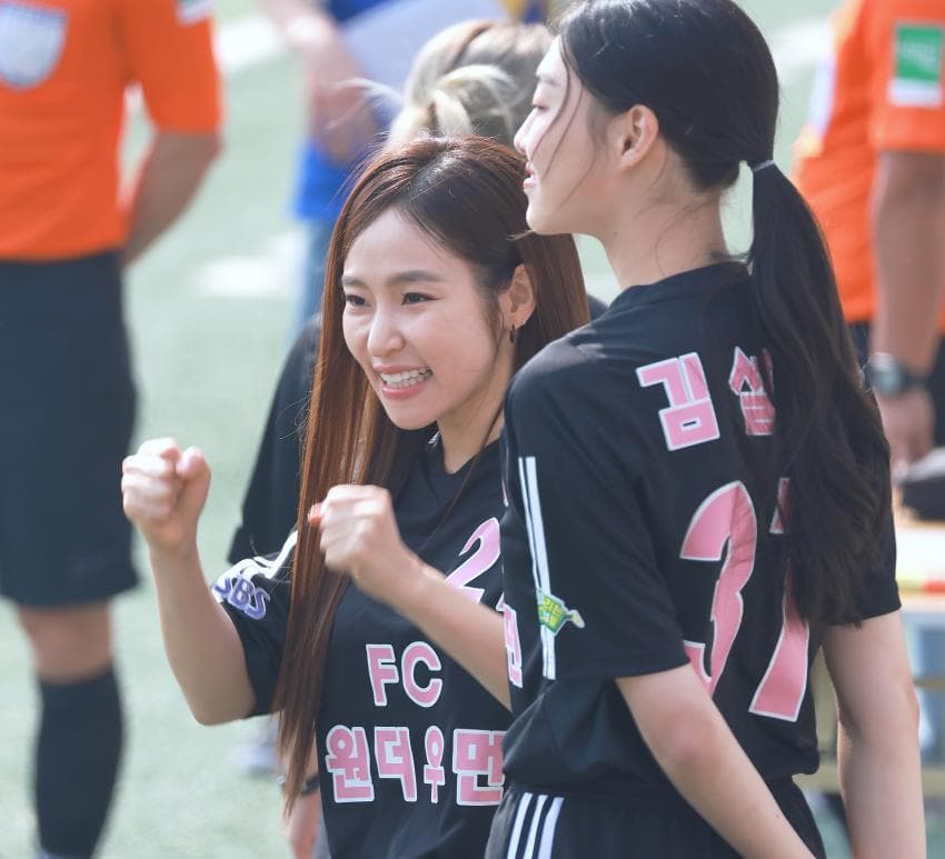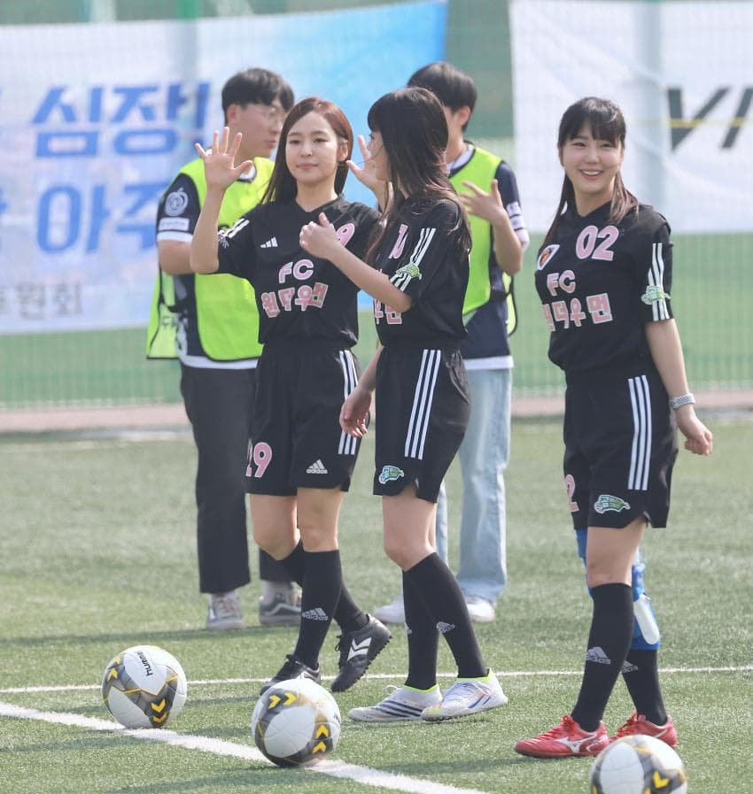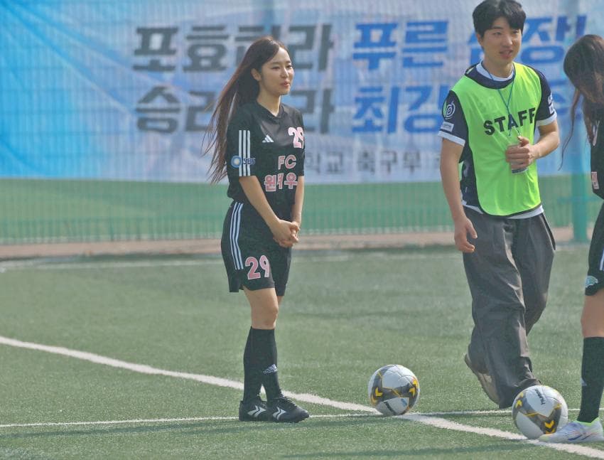 며칠전에 수원 아주대학교에서 축구시축 있었는데 원더우먼팀 맴버들이 초청되었음 ㅋㅋ