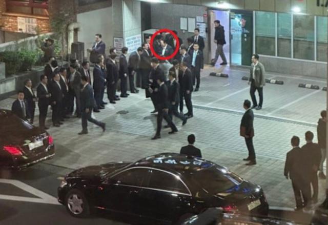 6일 각종 사회관계망서비스(SNS)와 온라인 커뮤니티에는 윤 대통령이 한 횟집에서 나오는 모습을 담은 사진이 올라왔다. 한 장관, 장 의원을 비롯한 여권 인사 10여 명이 일렬로 서서 차량으로 이동하는 윤 대통령을 배웅하는 모습이었다.