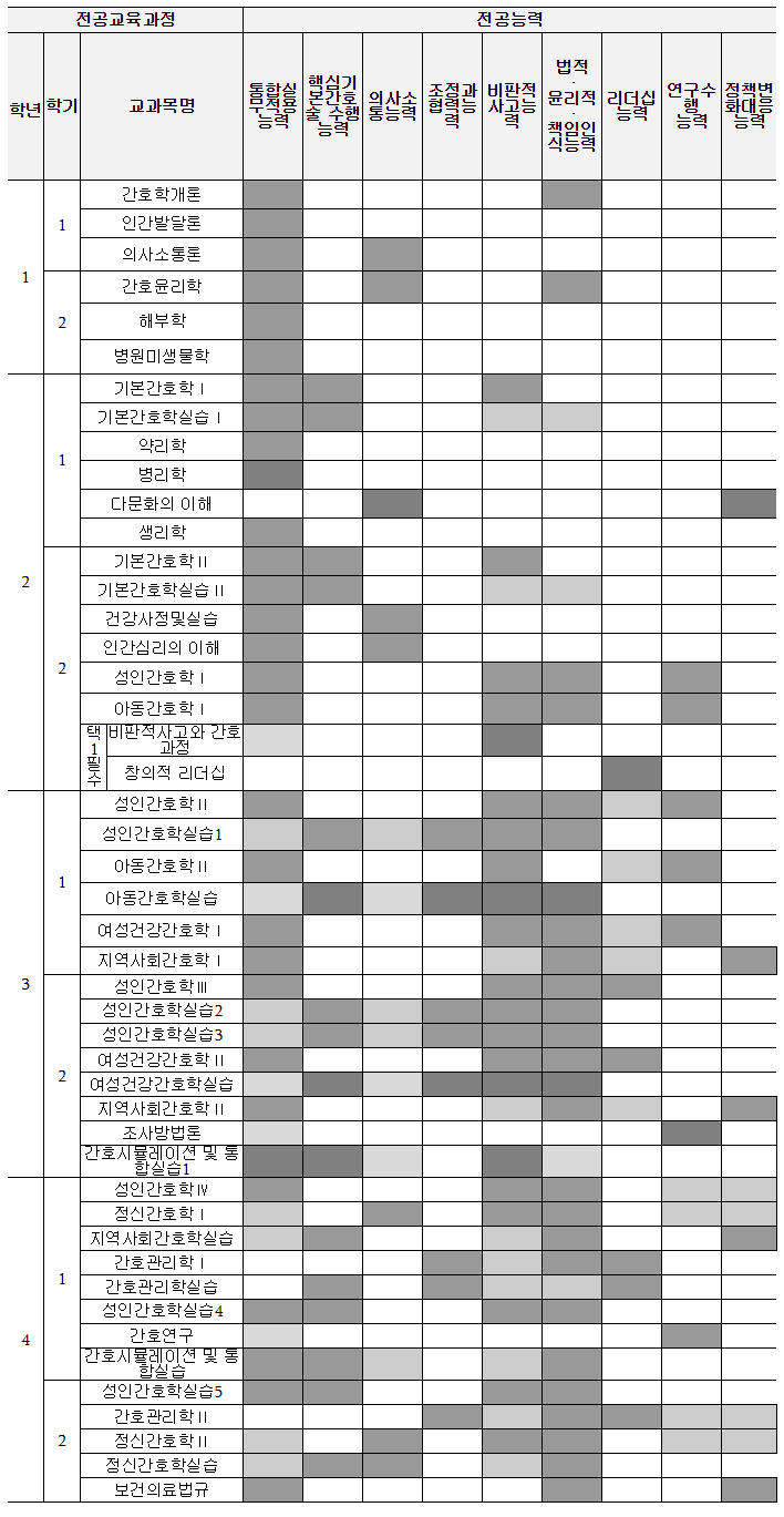 전공능력별 맵핑