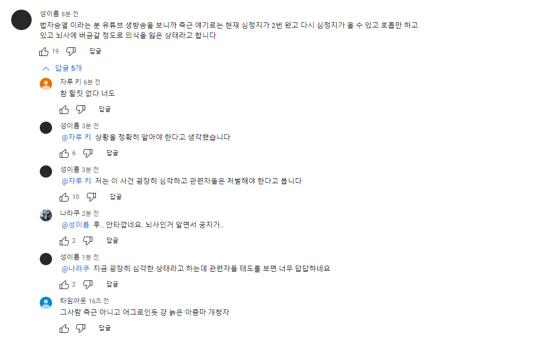 이에 그의 보호자는 유튜브 채널 '법자승열'를 통해, 임블리가"현재 목에 구멍을 뚫어 관을 연결해 산소호흡기를 단 상태다"고 전했으며, "부천 유튜버들을 대상으로 조서를 받게 하겠다"고 덧붙였다.
