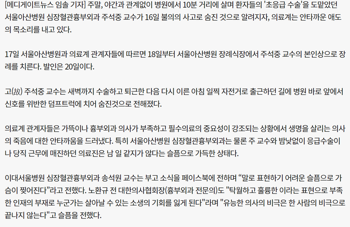 🩺 의사ㅣ의대 서울아산병원 故주석중 교수님 추모 by 두용이 2023. 6. 17. 반응형 서울아산병원 故주석중 교수님 추모 반응형 공유하기 게시글 관리 외시경실 관련글 의대에서 의외로 제일 똑똑하다는 사람 이 분 피부과 의사인데 개존예임..말이 되나 난 의사다 심지어 전문의다 의료체계 붕괴 막으려면 의대 증원만에 답인것 같음 댓글