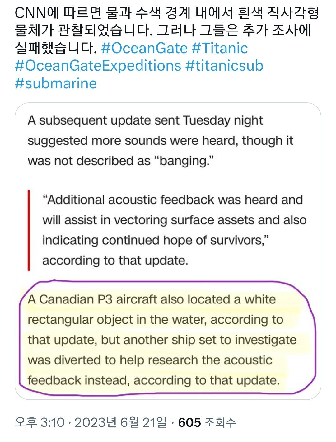 ⏱ 이슈/🚨 사건 사고 논란 (속보) 타이타닉호 잠수정 구조신호 확정 인양준비중 by 두용이 2023. 6. 21. 반응형 (속보) 타이타닉호 잠수정 구조신호 확정 인양준비중 반응형 공유하기 게시글 관리 외시경실 관련글 중국 닝샤 식당서 가스 폭발로 최소 31명 사망 엘레베이터 소변남, 자진신고 없자 얼굴 공개당해 고라니 낑겨있던 차 차주의 글 조민 의사면허 반납 댓글