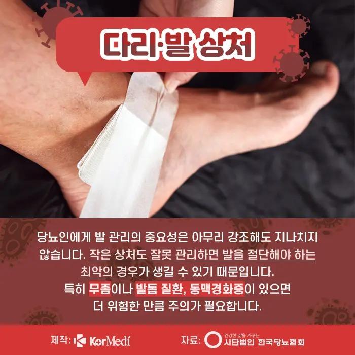 잘못 관리하면 발을 절단해야 하는 최악의 경우가 발생할 수 있기 때문이다.