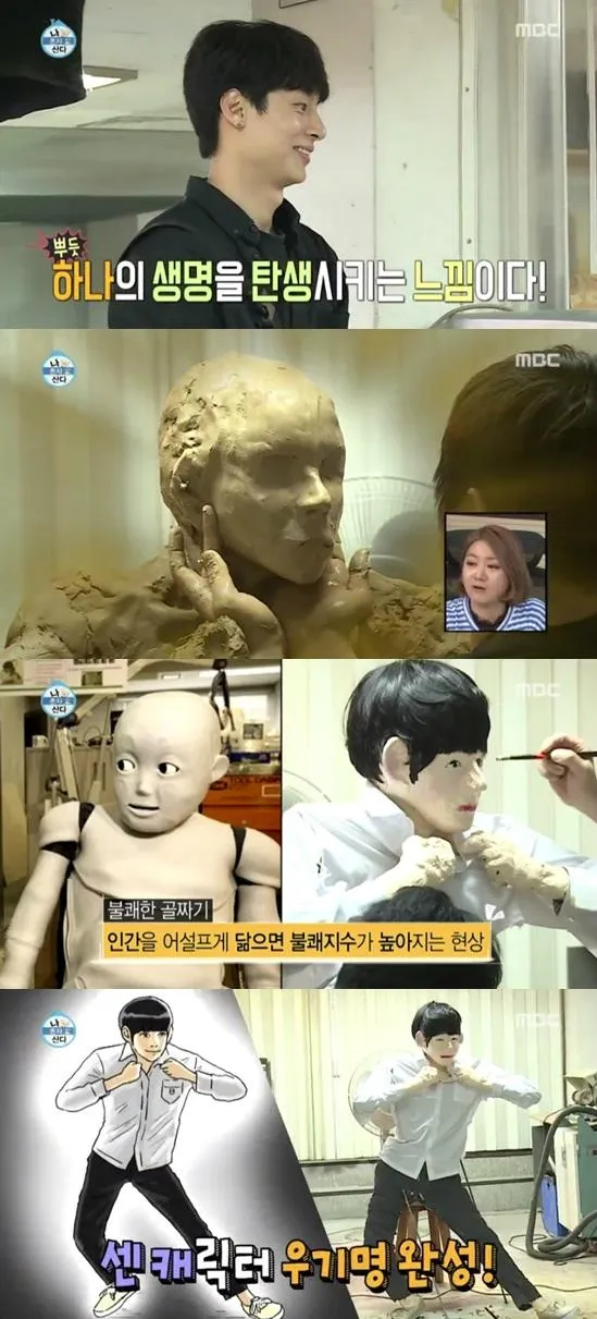 - 결국 나 혼자 산다에서 찰흙 200kg을 사다가 친한 후배이자 제품 디자이너 김충재와 둘이서 우기명 등신대 인형을 만들었다. 뼈대는 김충재가 철봉을 용접해서 만들어줬고 그 위에다 찰흙을 입히는 일을 기안84가 했다. 다만 기안84가 테라코타 경험이 없어서 찰흙을 빨리 말리려고 헤어드라이어를 쬐었다가 찰흙이 갈라지기도 하고, 찰흙이 마르지 않은 상태로 도색했다가 우기명이 세이벼같은 꼴이 되기도 하는 등, 많은 시행착오 끝에 완성시켰다.