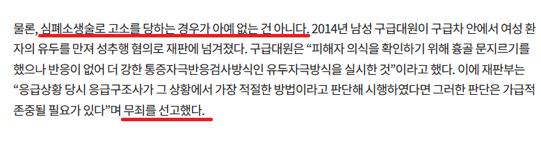 "모두가 알고 있는 심폐소생술" → 이었는지 재판에서 따져야 함 ㅋㅋㅋ
