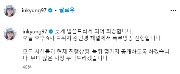 강인경 폭로 예고
