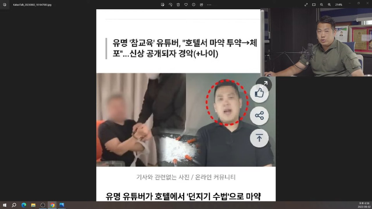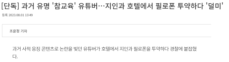 최근 한 참교육 유튜버 마약 사건이 터짐