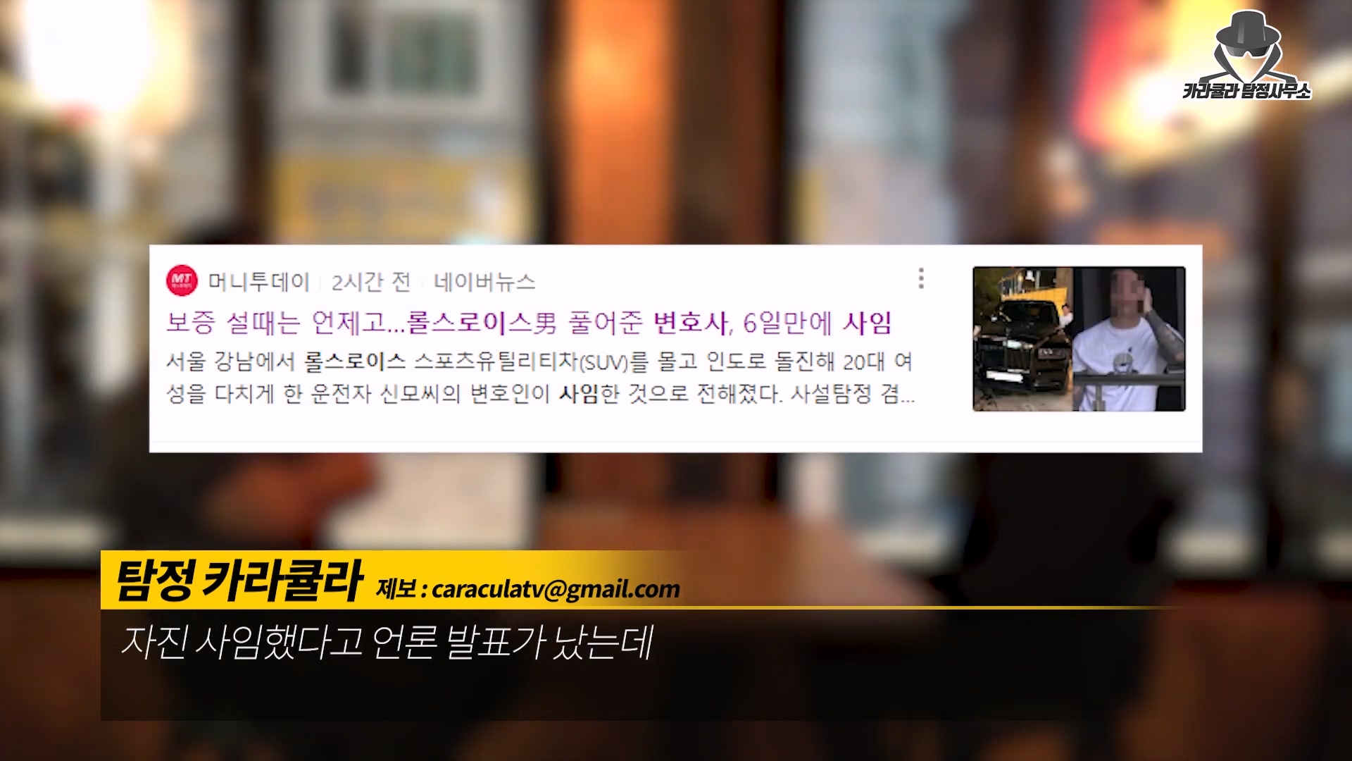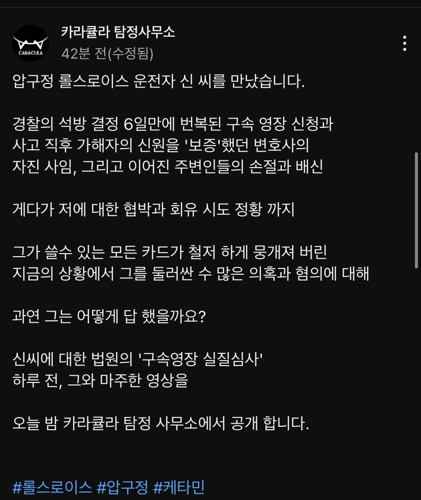 유튜브 '카라큘라 탐정사무소'에 압구정 롤스로이스 운전자의 인터뷰가 진행되었다.