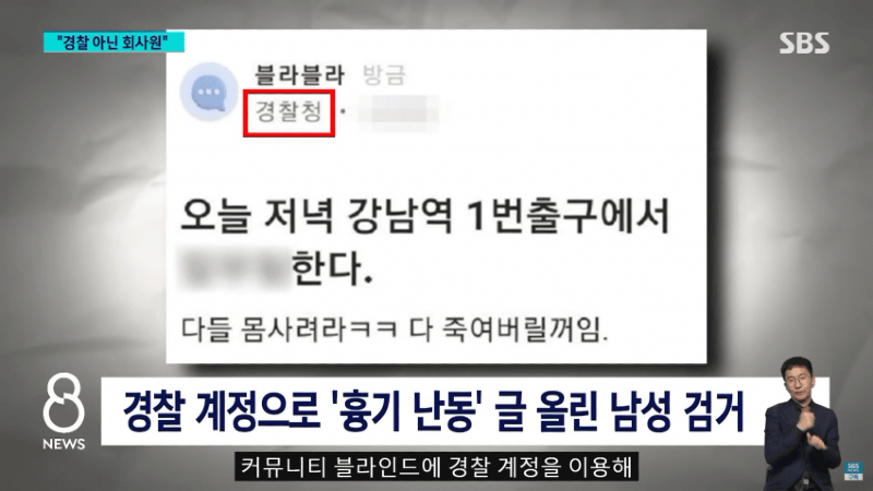 강남역 살인 예고 잡고보니 경찰 사칭 회사원