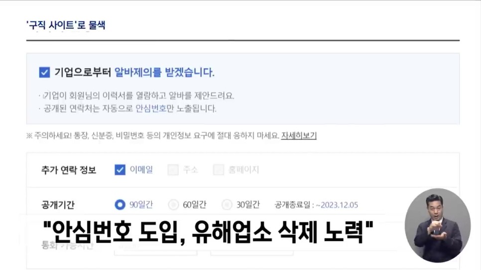 업체 측은 이러한 피해를 막기 위해 안심번호를 도입하고 유해업소를 삭제하고 있다고 밝혔지만, 구인자의 개인정보가 더 많이 공개된다는 점에서 마음만 먹으면 쉽게 악용할 수밖에 없는 구조인 것이다.